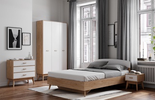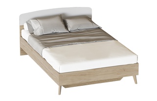 Кровать полутороспальная 140x200 Калгари, дуб натуральный светлый/белый матовый