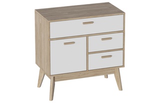 Комод с дверью и 3 ящиками Калгари, дуб натуральный светлый/белый матовый