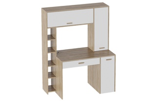Стол компьютерный Калгари, дуб натуральный светлый/белый матовый