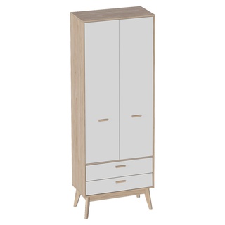 Шкаф Калгари 2 двери 2 ящика, дуб натуральный светлый/белый матовый