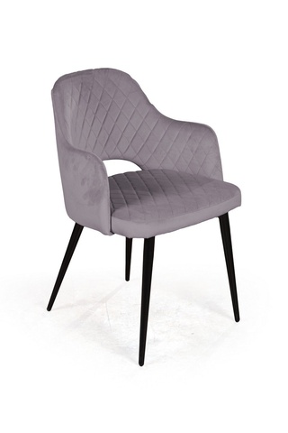 Стул с подлокотниками William, бархат светло-серого цвета 26/ черный конус/ромб