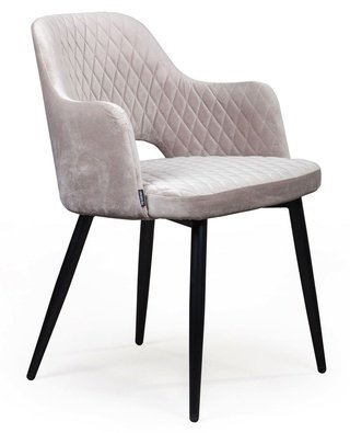 Стул с подлокотниками William, бархат пепельно-бежевого цвета 25/ черный конус/ромб