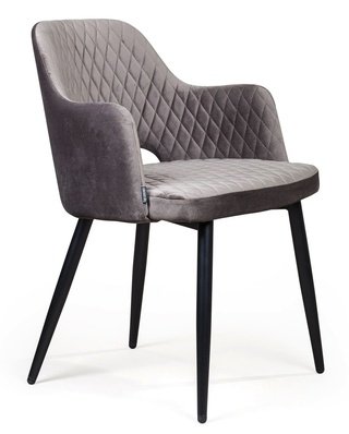 Стул с подлокотниками William, бархат серого цвета 27/черный конус/ромб
