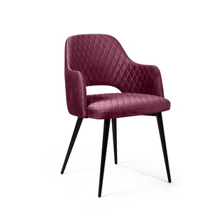 Стул с подлокотниками William, бархат винно-красного цвета 16/ черный конус/ромб