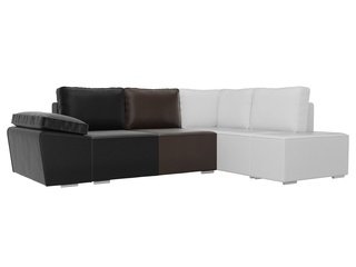 Угловой диван-кровать правый Хавьер, черный/белый/коричневый/экокожа