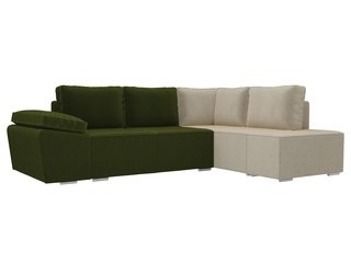 Угловой диван-кровать левый Хавьер, зеленый/бежевый/микровельвет
