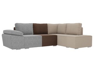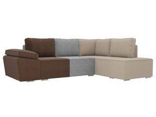 Угловой диван-кровать правый Хавьер, бежевый/коричневый/серый/рогожка