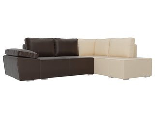 Угловой диван-кровать левый Хавьер, коричневый/бежевый/экокожа