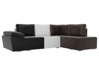 Угловой диван-кровать левый Хавьер, черный/белый/коричневый/экокожа