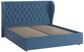 Кровать двуспальная 160x200 Жасмин с подъемным механизмом, синий велюр