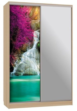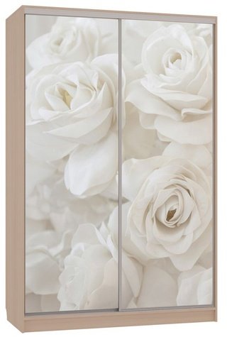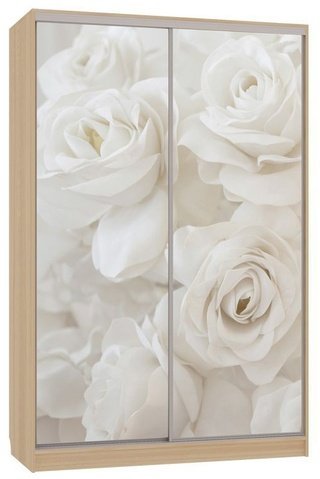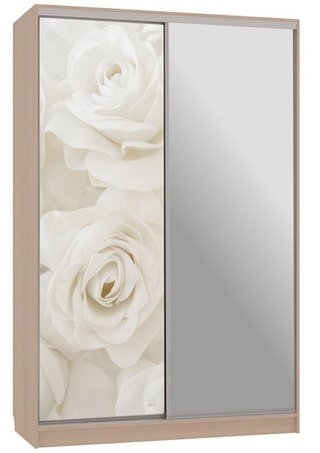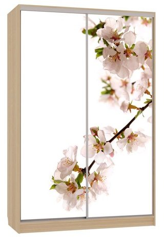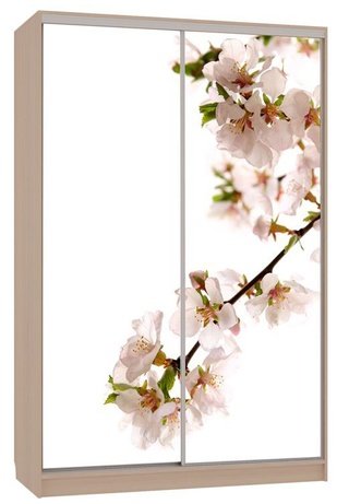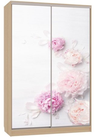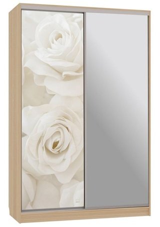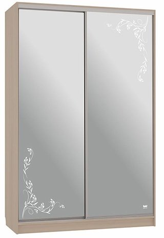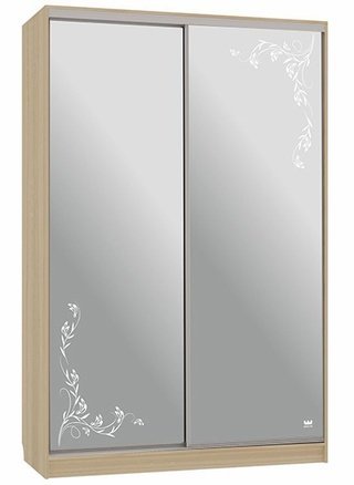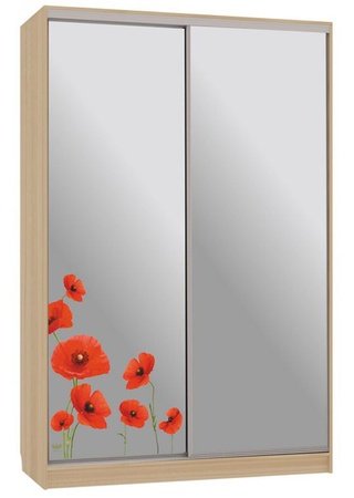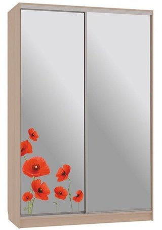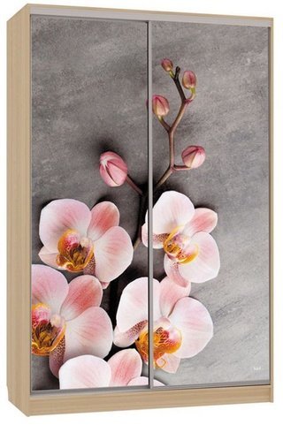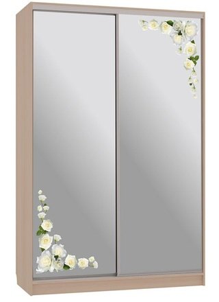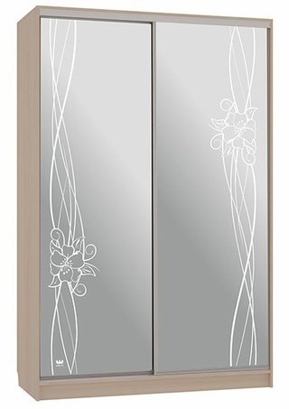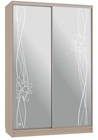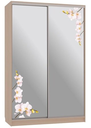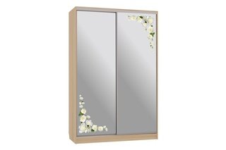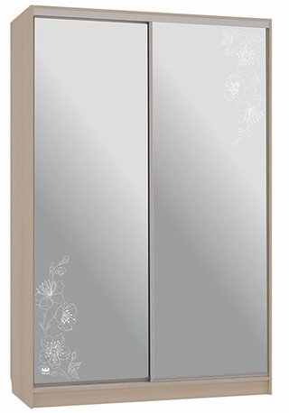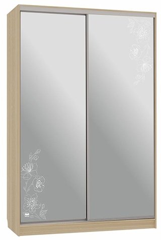 Шкаф-купе 2-дверный зеркальный Гранд 4-600, дуб млечный/цветы 2