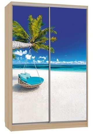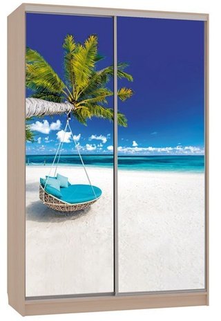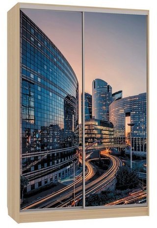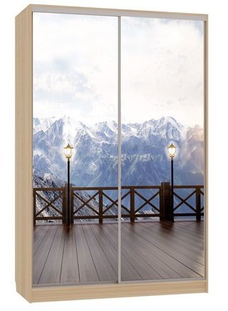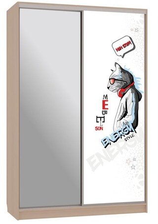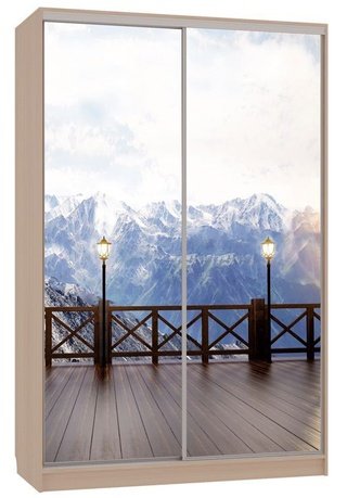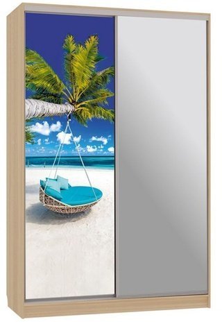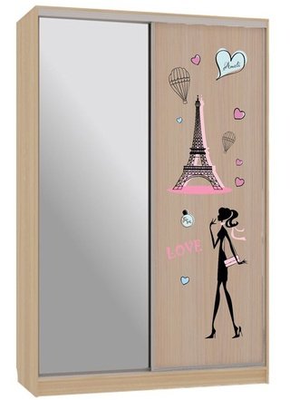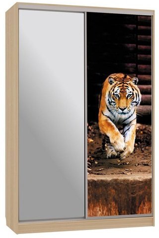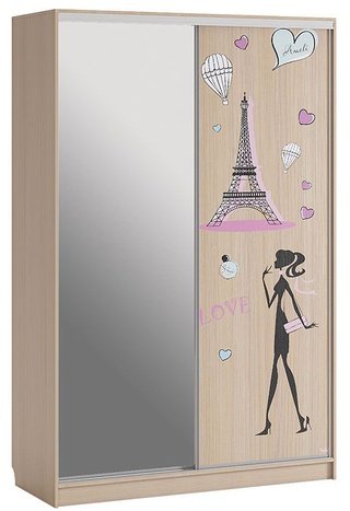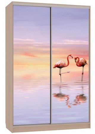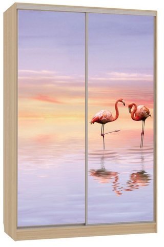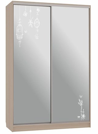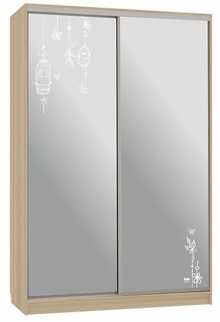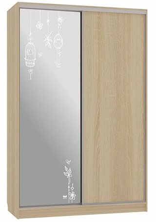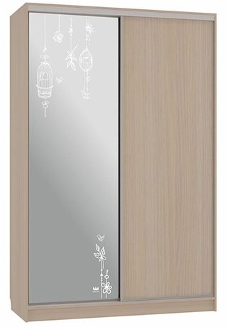 Шкаф-купе 2-дверный с зеркалом Гранд 1-600, дуб млечный/птицы