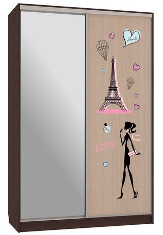 Шкаф-купе 2-дверный с зеркалом Гранд 1-600, венге/птицы