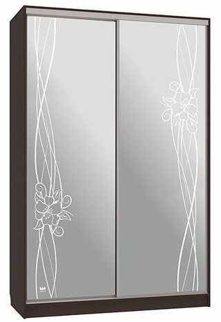 Шкаф-купе 2-дверный с зеркалом Гранд 1-600, венге/цветы 2