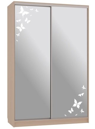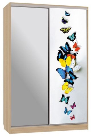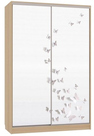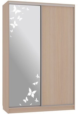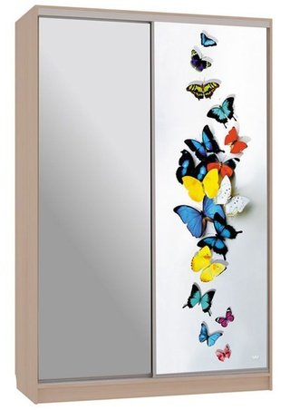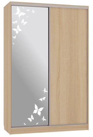 Шкаф-купе 2-дверный с зеркалом Гранд 1-600, дуб млечный/бабочки