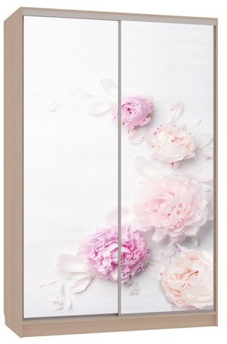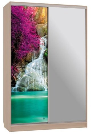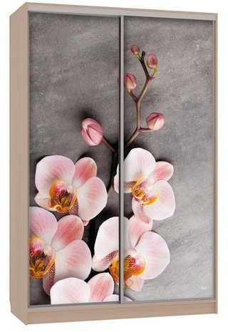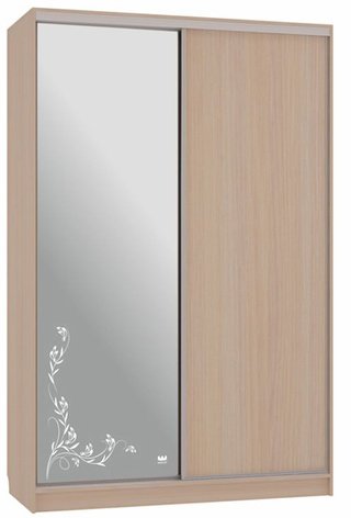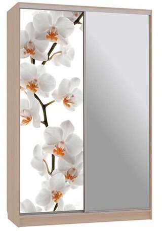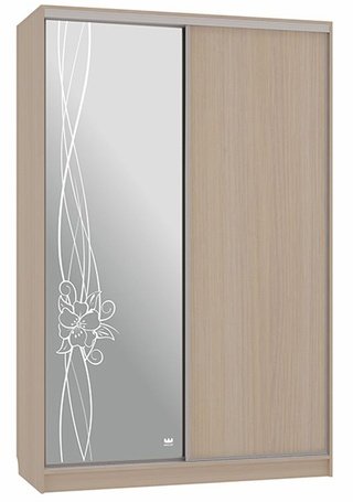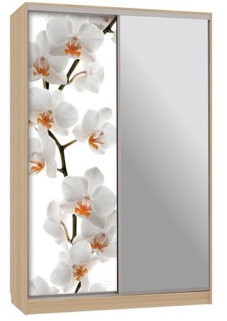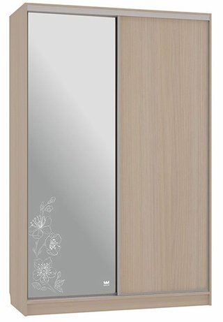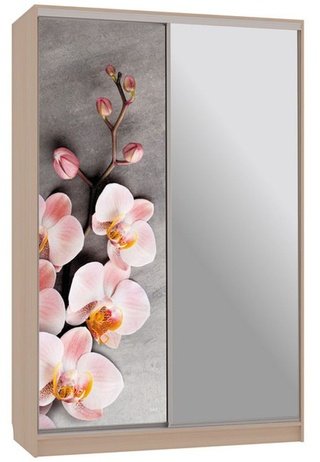 Шкаф-купе 2-дверный с зеркалом Гранд 1-600, дуб млечный/цветы 2