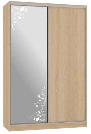 Шкаф-купе 2-дверный зеркальный Гранд 4-600, дуб сонома/цветы 2