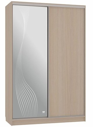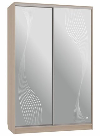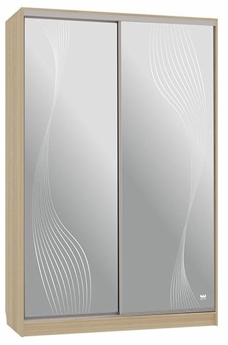 Шкаф-купе 2-дверный с зеркалом Гранд 1-600, дуб млечный/волны 1