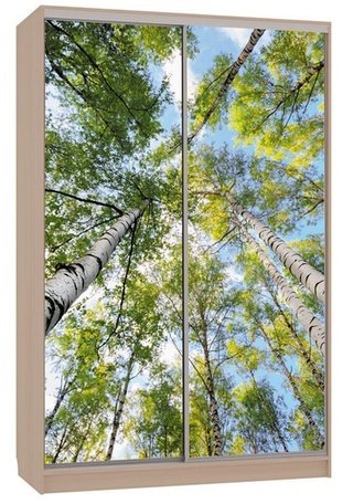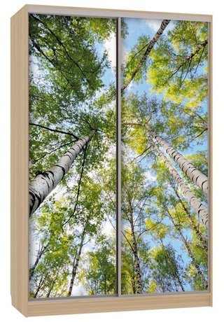 Шкаф-купе 2-дверный зеркальный Гранд 4-600, дуб млечный/птицы