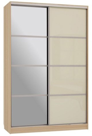 Шкаф-купе 2-дверный с зеркалом Гранд 2-600, дуб млечный/крем