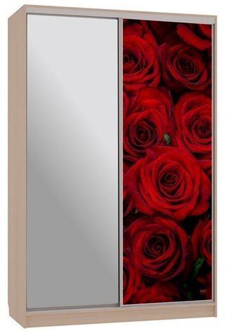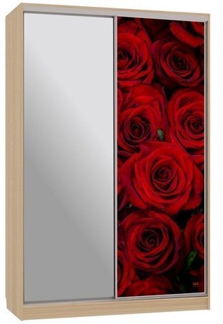 Шкаф-купе 2-дверный зеркальный Гранд 4-600, дуб млечный/розы