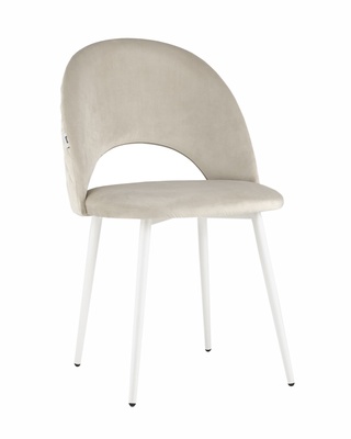 Стул Меган, велюровый бежевого цвета/белые ножки