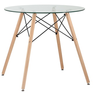 Стол обеденный круглый EAMES DSW D80, прозрачное стекло/натуральный