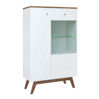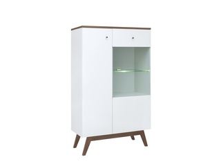 Шкаф-витрина низкий с подсветкой Хеда Heda REG1D1W, белый/лиственница сибирская золотая/белый блеск