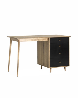 Стол рабочий Berber с малой тумбой, светлое дерево/черный принт 33