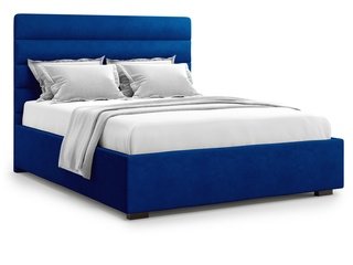 Кровать двуспальная 160x200 Karezza с подъемным механизмом, синий велюр velutto 26