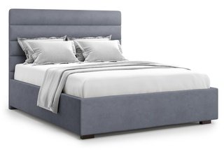 Кровать полутороспальная 140x200 Karezza с подъемным механизмом, серый велюр velutto 32