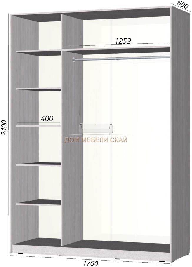 Достоинства Огромный шкаф-купе во всю стену вышел раза в два дешевле, чем нам считали в других магазинах. Рекомендую