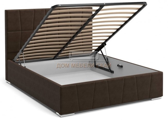 Кровать Пассаж 1600 с подъемным механизмом, коричневый велюр