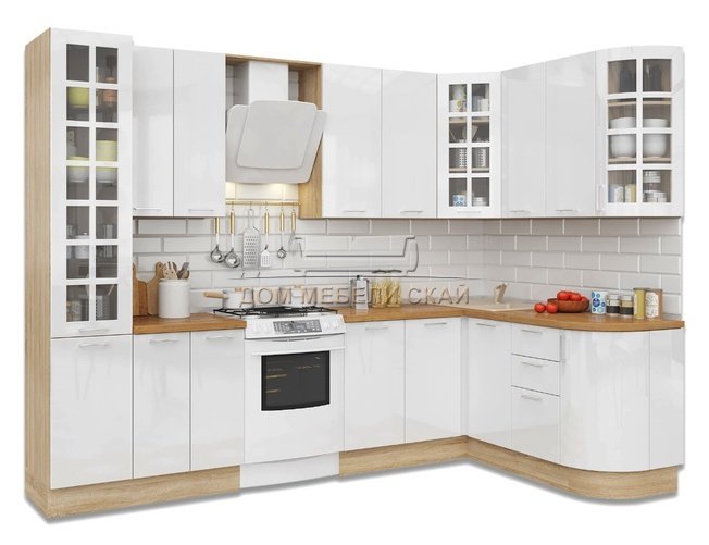 Кухня Модерн угловая 1720x3000, белый глянец