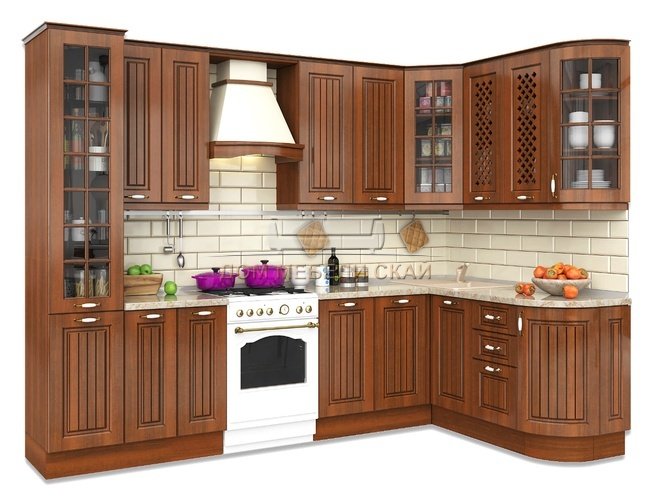 Угловая кухня Неаполь 1720x3000, орех/патина
