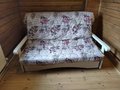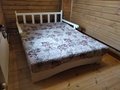 Приятная по цвету крашенная древесина, чехол можно постирать, спальное место прямое и удобное (может чуть низковато, но нас это не смутило)Пришлось подождать около 2ух недель. Перед доставкой нам позвонили и потом еще водитель за час позвонил, привезли и собрали быстро.