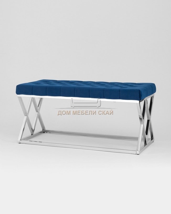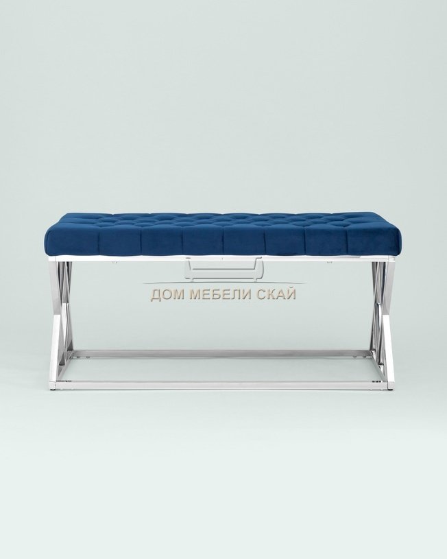 Банкетка-скамейка Инсигния, серебро/синий вельвет