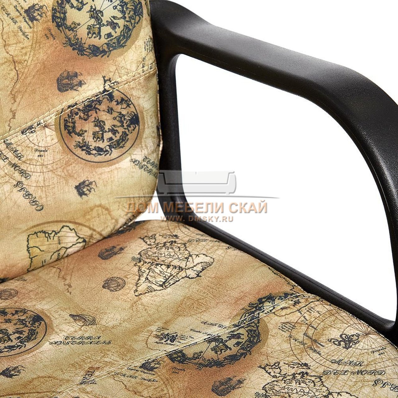 Кресло офисное Багги Baggi, принт «Карта на бежевом» велюр