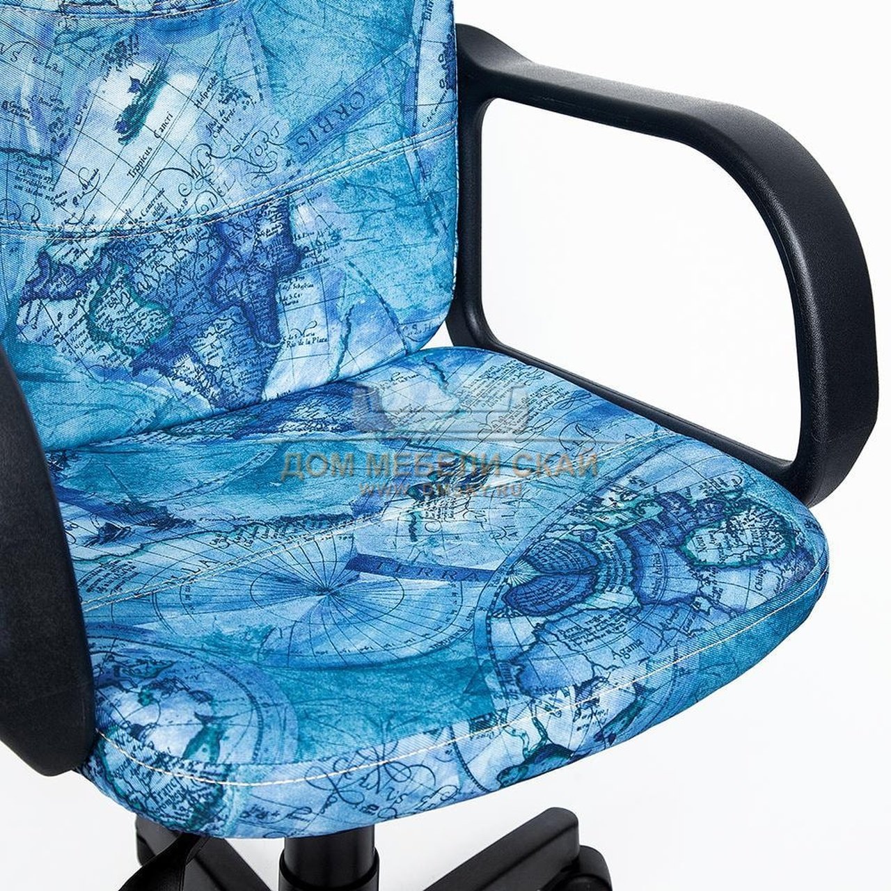 Кресло офисное Багги Baggi, принт «Карта на синем» велюр