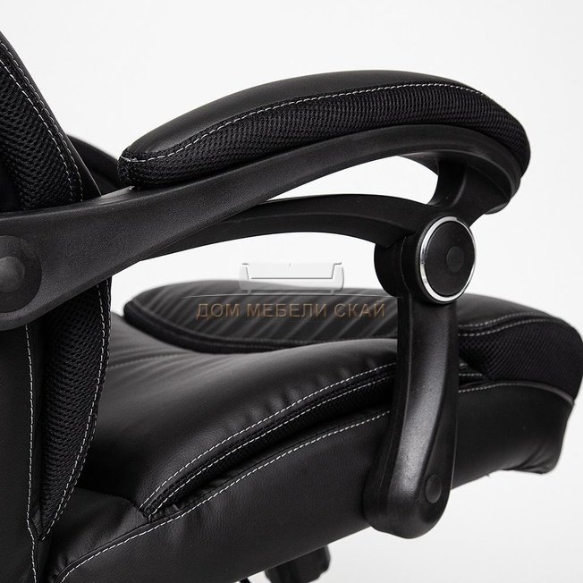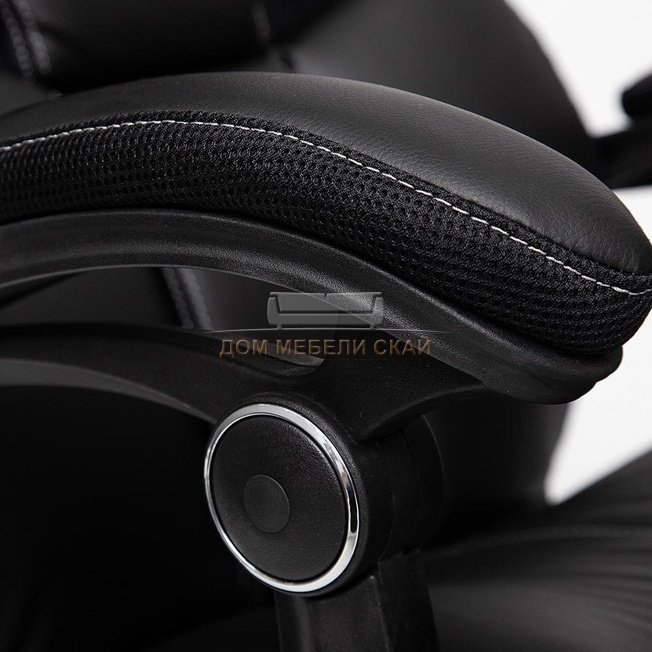 Кресло офисное Кембридж Cambridge, черная экокожа/черная сетка