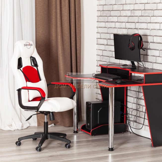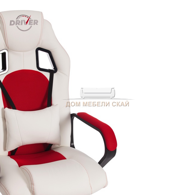 Кресло офисное Драйвер Driver, белая экокожа/красная сетка сетка