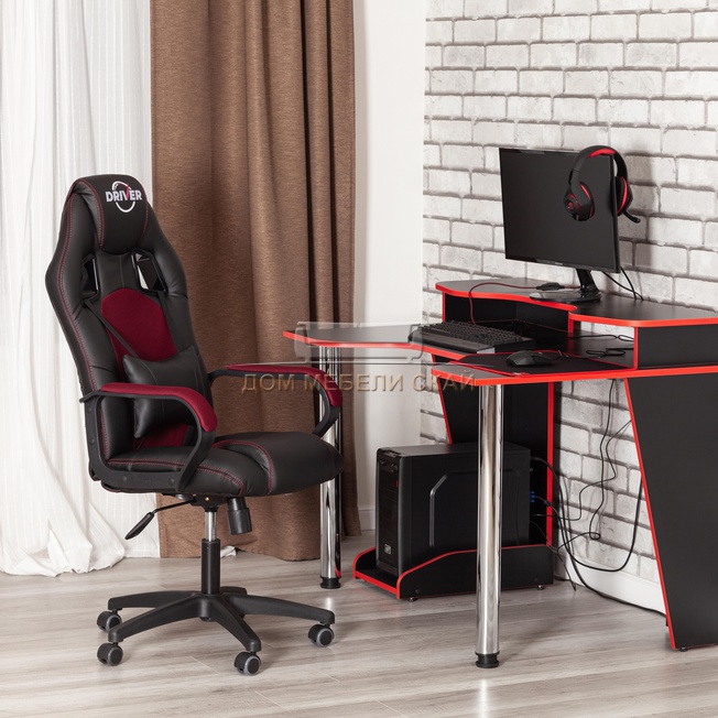 Кресло офисное Драйвер Driver, черная экокожа/бордовая сетка