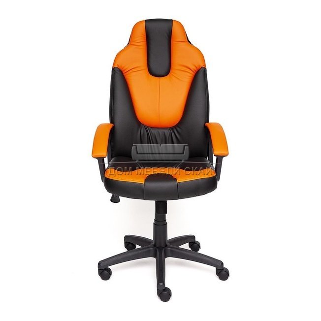 Кресло офисное Нео Neo 2, черная/оранжевая экокожа
