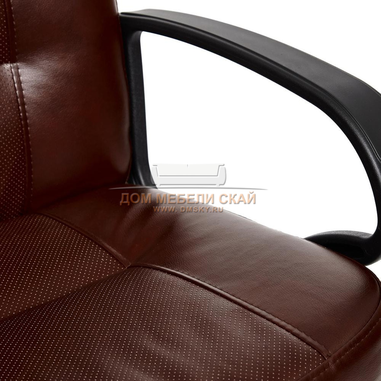 Кресло офисное Девон Devon, глянцевая коричневая перфорированная экокожа