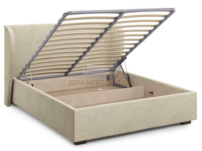 Кровать полутороспальная 140x200 Tenno с подъемным механизмом, бежевый велюр velutto 17