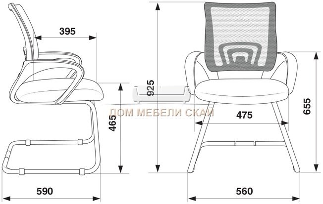 Глубина сиденья395