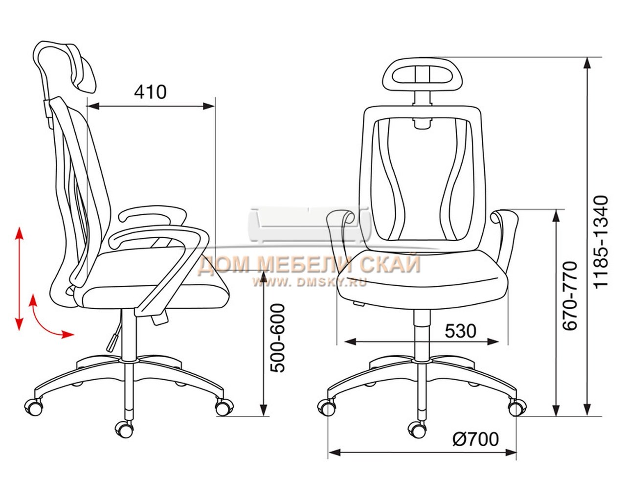 | Высота сиденья максимальная | 600 | |||
