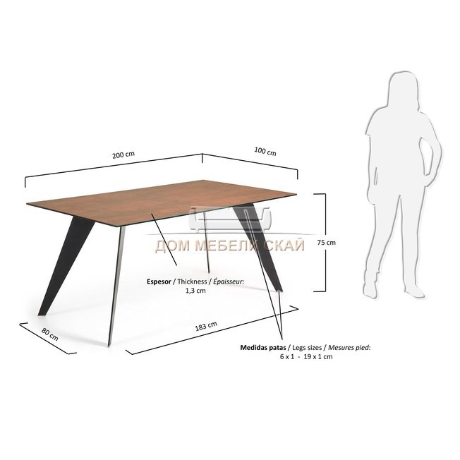 Стол обеденный Nack 200x100, черный каркас/фарфоровый Corten C368K10