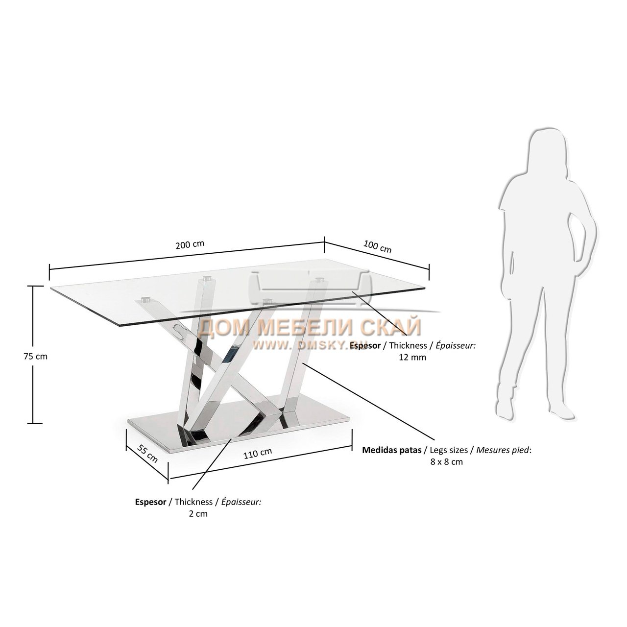 | Цвет стола | прозрачный, ножки хром | |||