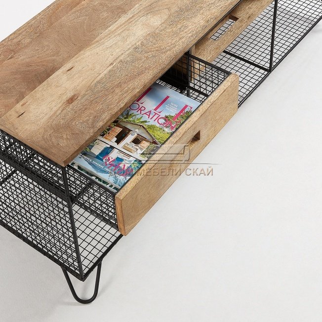 | Материал корпуса | комбинированный: металлическая конструкция в сетчатом исполнении, декорирована цепочками внутри корпуса, массив дерева манго с выраженной текстурой | |||